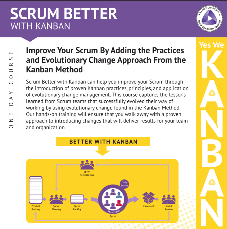 If you are a Scrum practitioner, team lead, Scrum Master, Agile coach, or a manager, who wants to understand an evolutionary approach to improving your Scrum using the Kanban practices, the Scrum Better with Kanban course is a great place to get started!